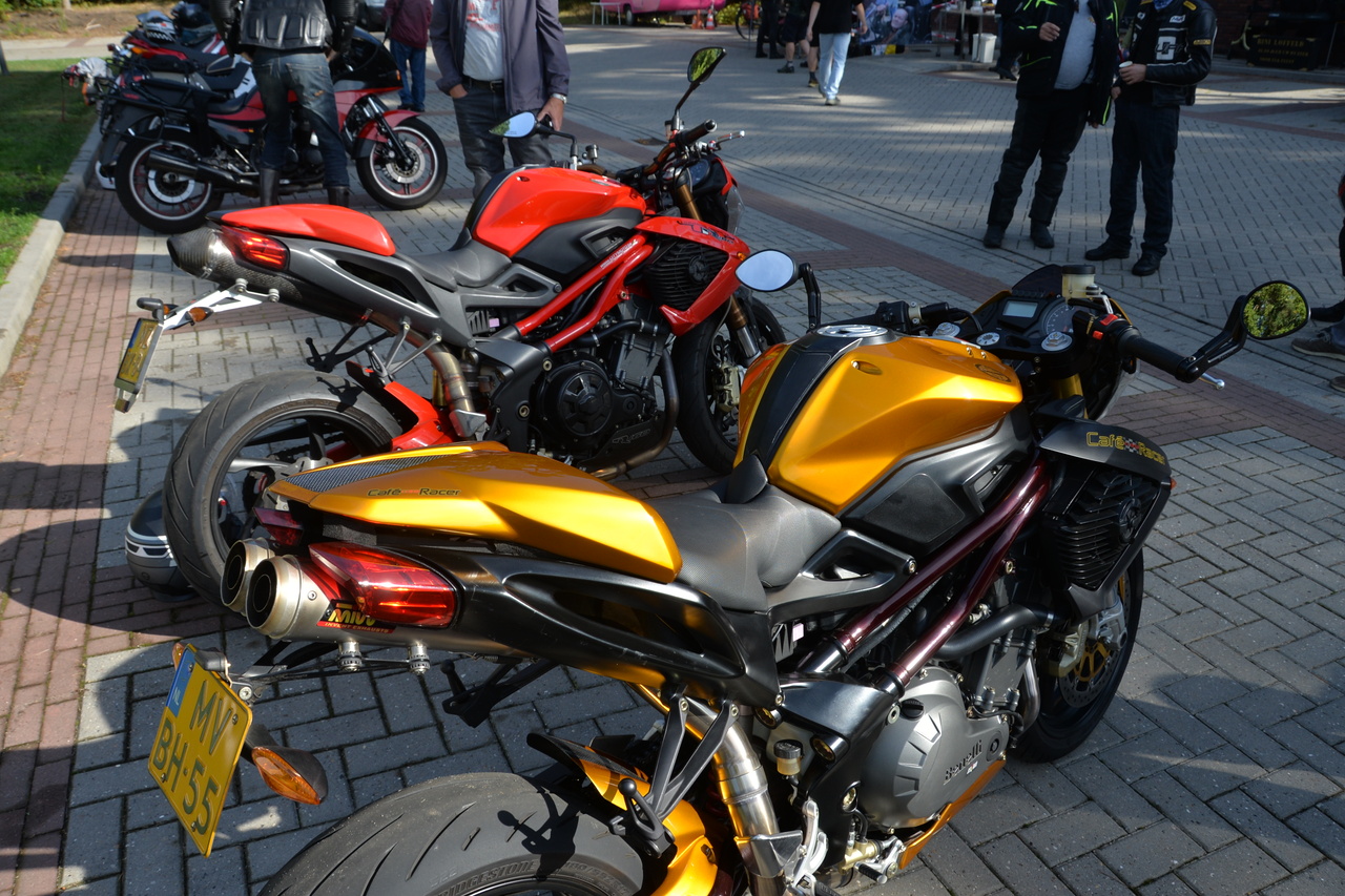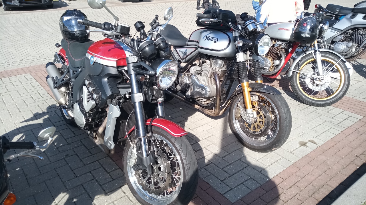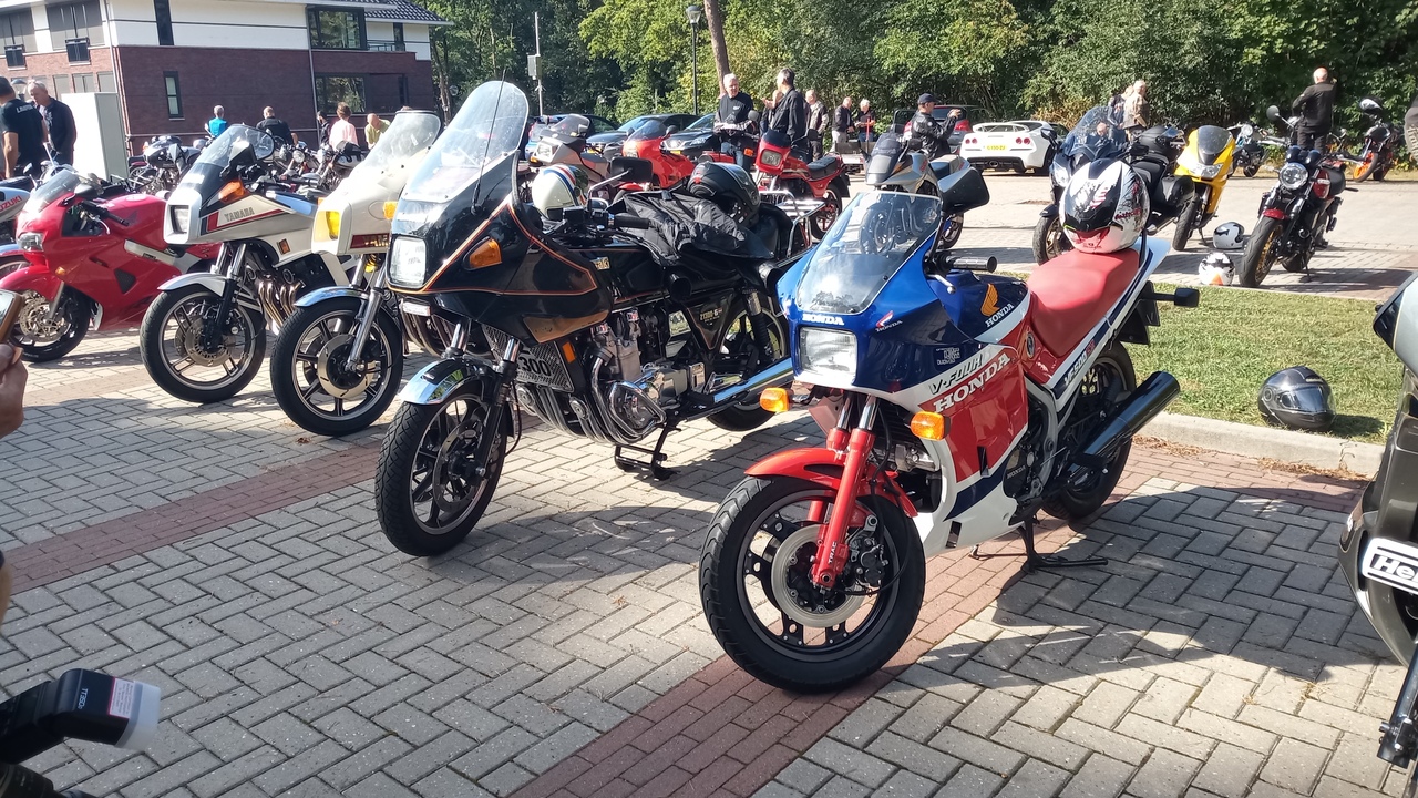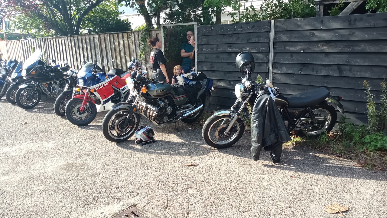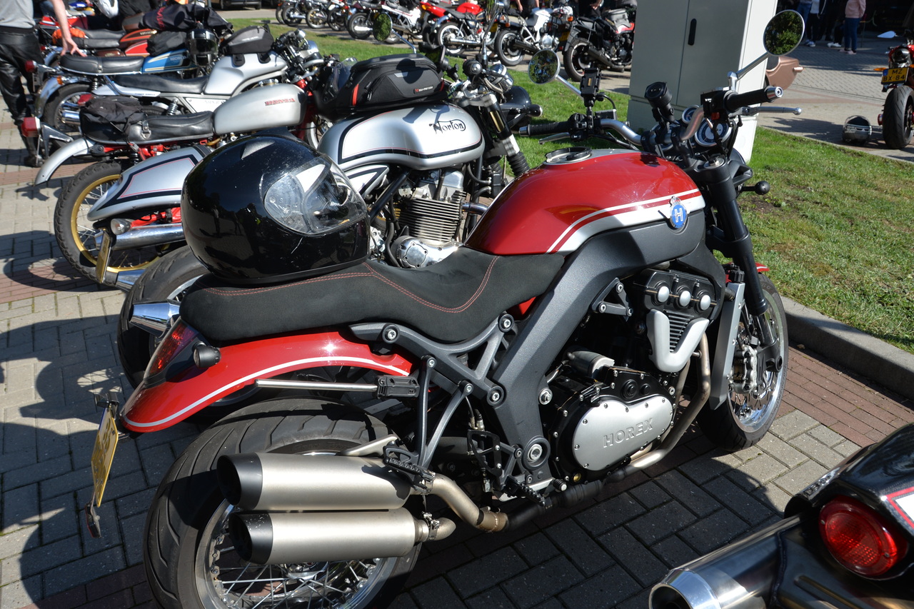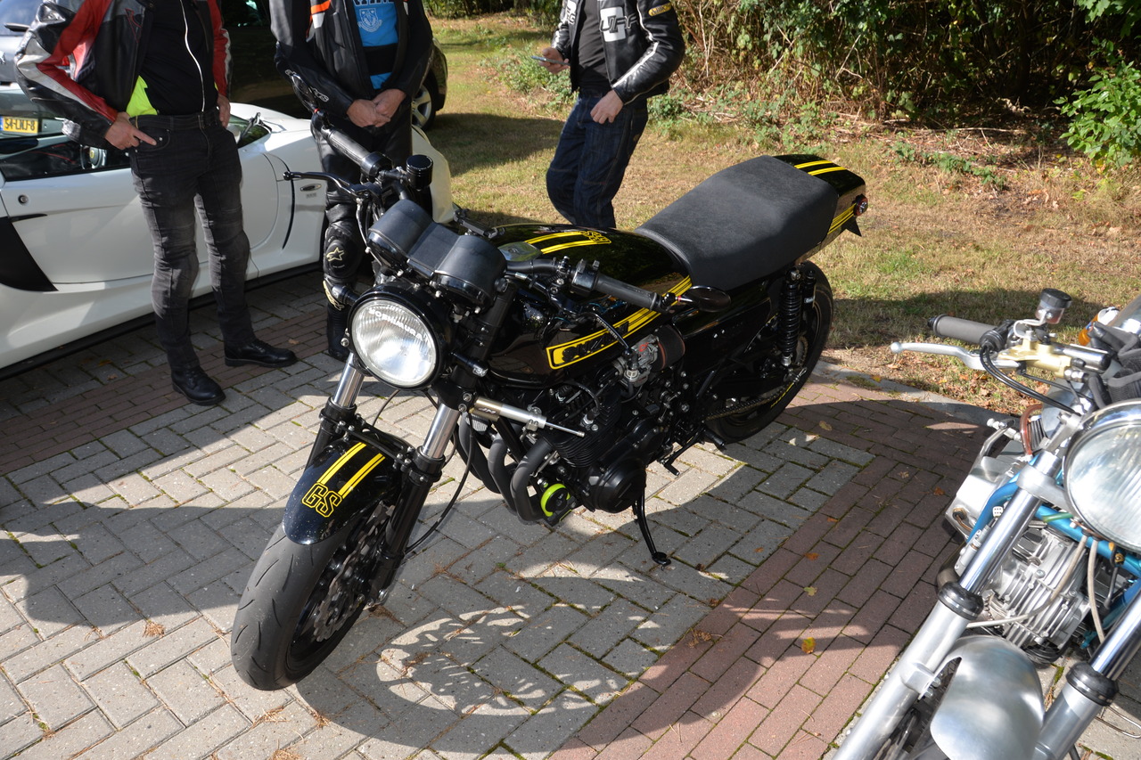 Tussen de motoren troffen we enkele ware zeldzaamheden aan: twee iconische zes-cilinders (de Honda CBX1000 en de Kawasaki Z1300), twee Kawasaki Turbo, en zelfs een unieke custom Wankelmotor in een Kawasaki-frame. Daarnaast werden we verrast door de komst van een Horex, een BFG automotor en een Laverda met zijspan. Ook Bob Hollander was weer van de partij met zijn bijzondere Yamaha XJ750D. Kortom, een ongekend aanbod van exotische motoren die het hart van elke motorliefhebber sneller deden kloppen.
