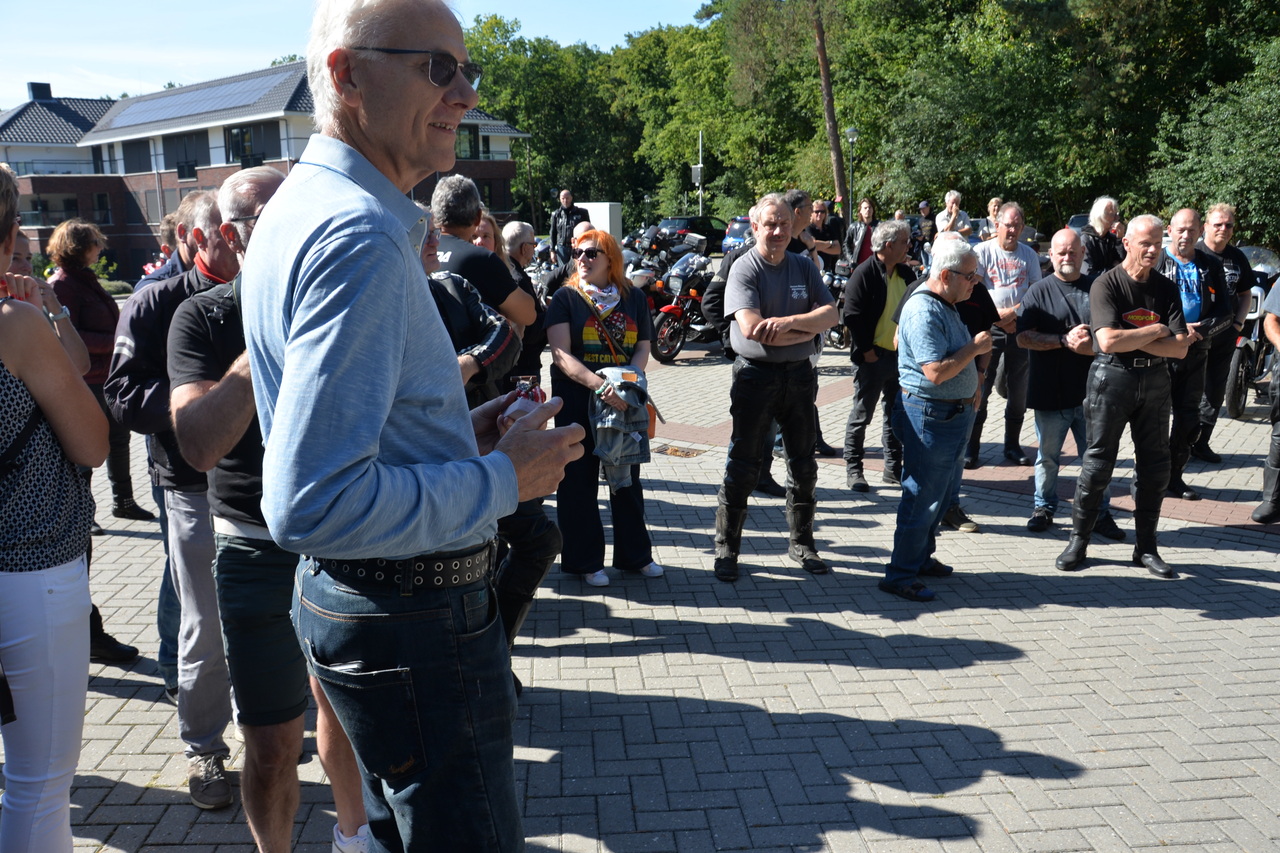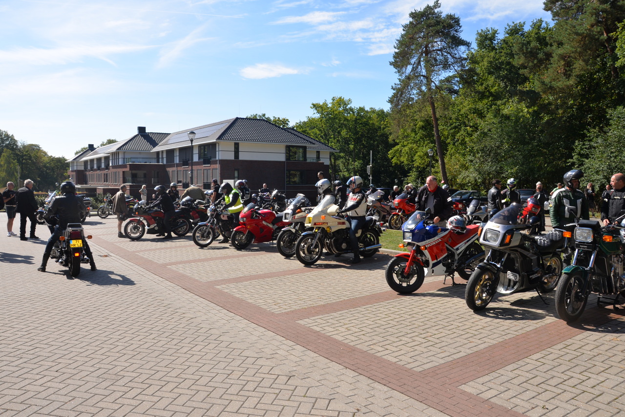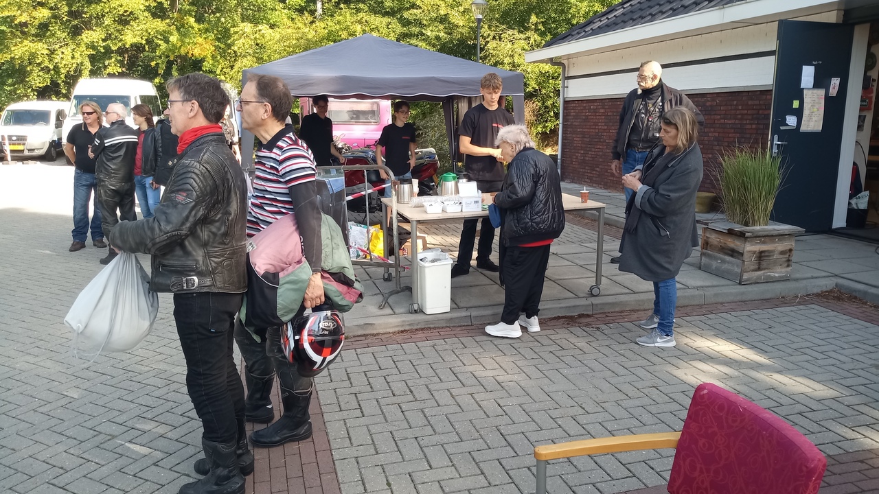 De motoren waren niet de enige hoogtepunten. Natuurlijk waren er ook de beroemde prijzen, die dit jaar speciaal waren gemaakt door de bewoners van het Zonnehuis. Na de prijsuitreiking vertrokken we met een mooie toertocht door de prachtige landerijen richting Deroue Motoren in Nijkerkerveen, waar we verrast werden met een krentenbol en een heerlijke bak koffie.