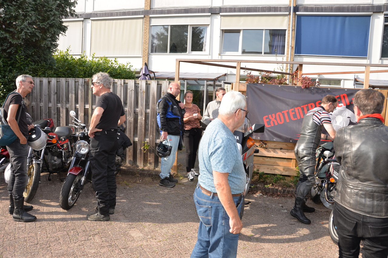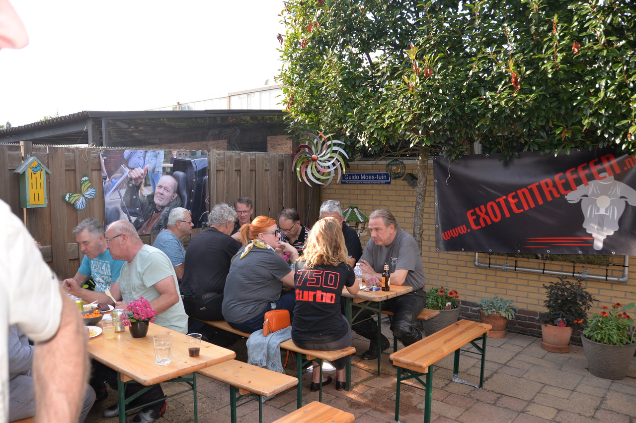 Zoals altijd waren we weer welkom op het schilderachtige terrein van het Zonnehuis, waar we de dag begonnen met het inrichten van de locatie bij "De Klusschuur". Tegen tien uur druppelden de eerste motorliefhebbers binnen, en al snel was het terrein gevuld met een indrukwekkende variëteit aan exotische motoren. Het Exotentreffen blijft elk jaar weer een magneet voor motorrijders die hun bijzondere machines willen laten zien.